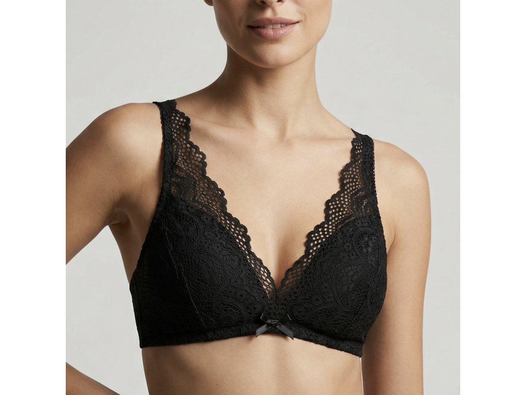 Model Elegance je ušitý z detailní černé krajky, která krásně rámuje dekolt. Lehce vyztužené košíčky dodají přirozený tvar a jemnou oporu, aniž by působily tvrdě nebo nepohodlně.