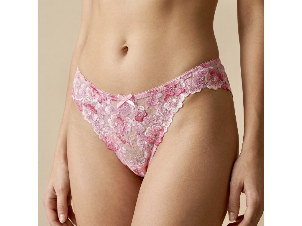 Brazilky Fleur jsou ušité z květinové krajky, která není elastická – díky tomu si zachovává pevnější tvar a výrazný detail vzoru. Střih brazilky jemně zvýrazní siluetu a působí žensky a elegantně.