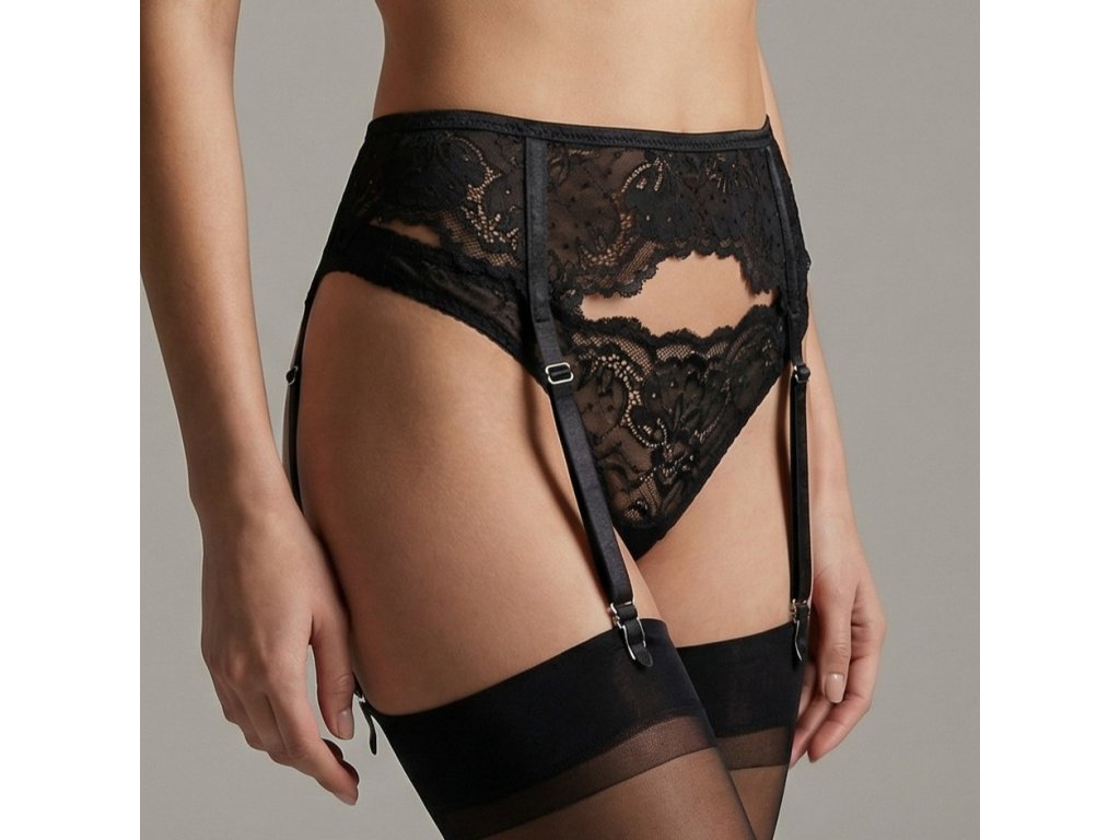 Jemné krajkové podvazky v černém odstínu s romantickým vzorem a nastavitelnými pásky. Smyslný detail, který dokonale doplní každý set. Poslední kusy skladem.